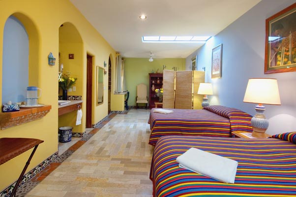 Todas nuestras habitaciones en Casa de las Flores han sido construidas con el encanto de lo clásico y de la artesanía de la cual es famosa nuestra región. Las habitaciones de nuestros huéspedes y los jardines han sido decoradas con el original arte popular del lugar y el arte contemporáneo de la zona. Nuestras habitaciones son amplias y han sido diseñados por un arquitecto premiado en Guadalajara.